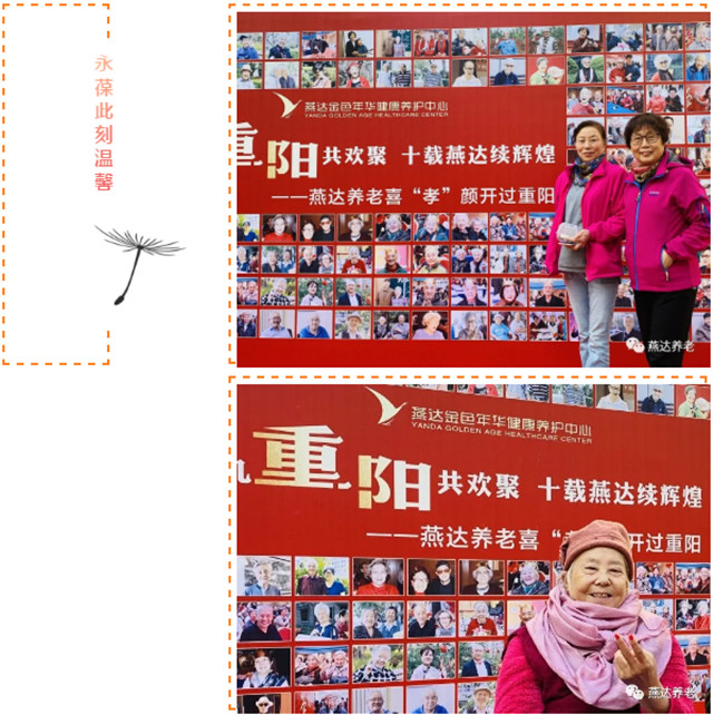 2020年是繼“百對老人鉆石婚”“四世同堂”“孝滿燕達”重陽活動后,又一個“愛在重陽”的系列活動,燕達養護中心致力于弘揚“尊老為德,敬老為善,愛老為美,助老為樂”的傳統美德,未來,將持續打造燕達專屬的重陽老年節活動子品牌,愿越來越多的長輩,在“燕達一家親”的這個大家庭里溫馨樂活、幸福安康!