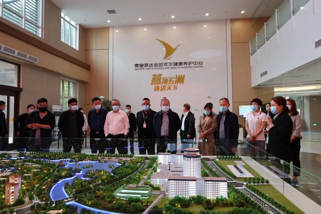 領導一行首先來到秦皇燕達國際健康城實景沙盤,了解整體發展規劃。秦皇燕達國際健康城包含秦皇燕達養護中心、秦皇燕達醫院、秦皇燕達培訓學院、秦皇燕達研究院共五大板塊,是集醫療、養老、康復、科研、教育等為一體的綜合性健康產業基地。